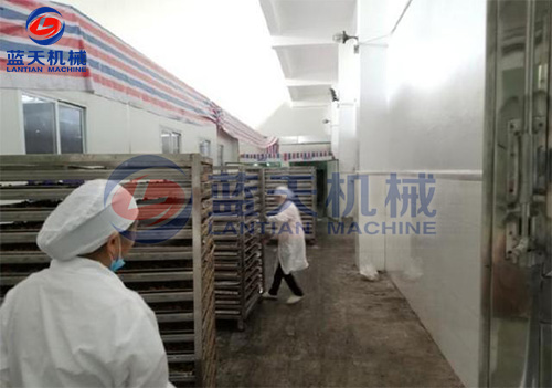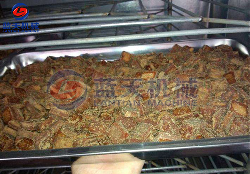 紅糖烘干工藝:將紅糖磚切成方塊狀,置入托盤中,在物料架中分層放好,注意層與層之間的距離,將物料車推入烘干房,開始啟動溫濕控制系統(tǒng),在紅糖烘干機的使用過程中,第一個小時可以只升溫不排濕,因為在工作的第一階段,烘干房里面的濕度很低。第二階段設(shè)定為烘干加排濕的工作程序模式。紅糖烘干機帶有余熱回收功能。在排濕過程中的熱量會重新參與到烘干房的熱循環(huán)。排濕過程當(dāng)中不會造成熱量浪費,從而降低了運行成本。
