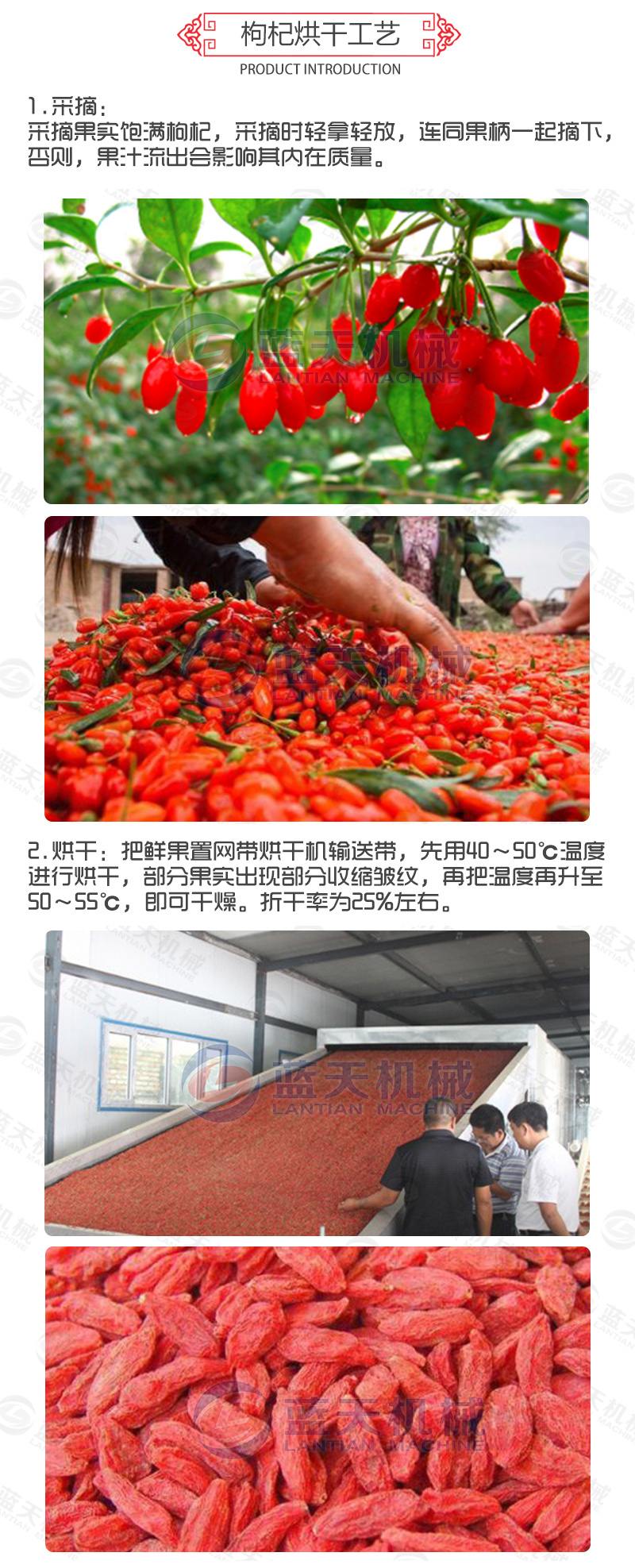 2、枸杞網(wǎng)帶烘干機(jī)烘干出來(lái)的枸杞色澤優(yōu)于自然晾曬的色澤,色正味純、細(xì)密、無(wú)黑斑,可滿足烘干各種產(chǎn)品要求,有效地保證了烘品的自然品質(zhì)。