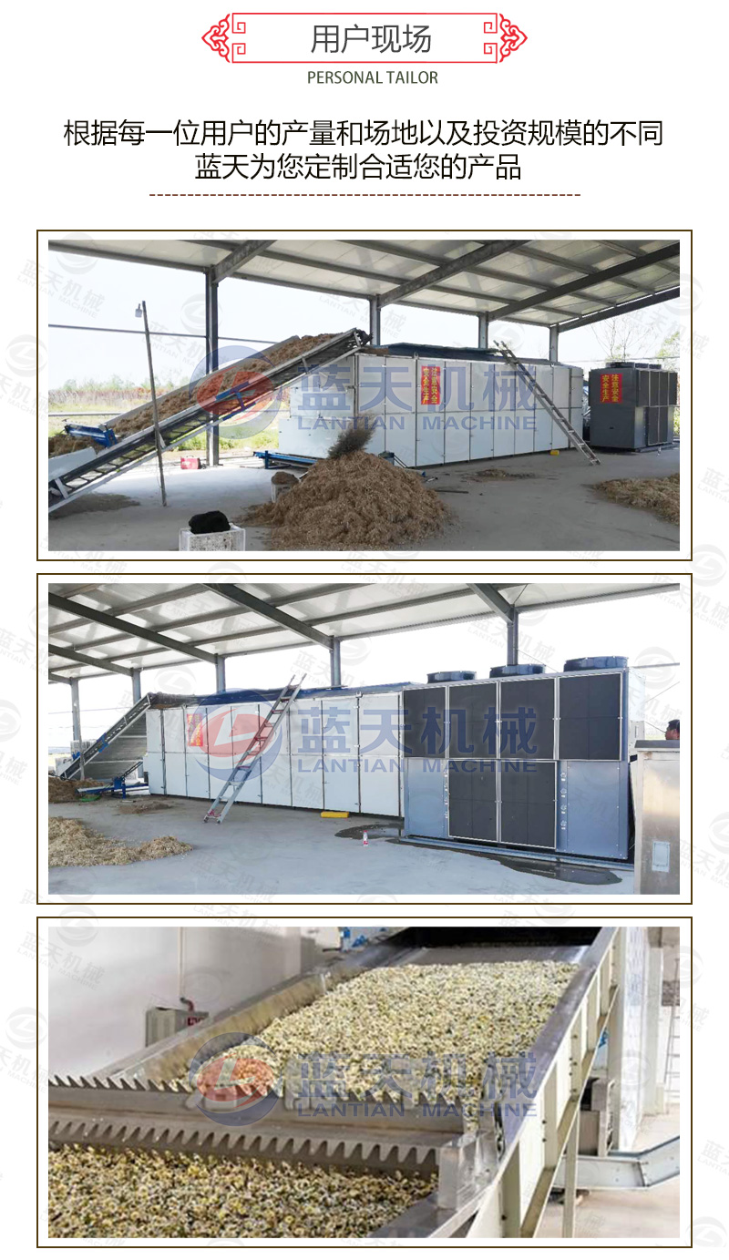 1、大型枸杞烘干機(jī)的尾部配冷卻段,可以對(duì)烘干出來(lái)的枸杞進(jìn)行及時(shí)冷卻。