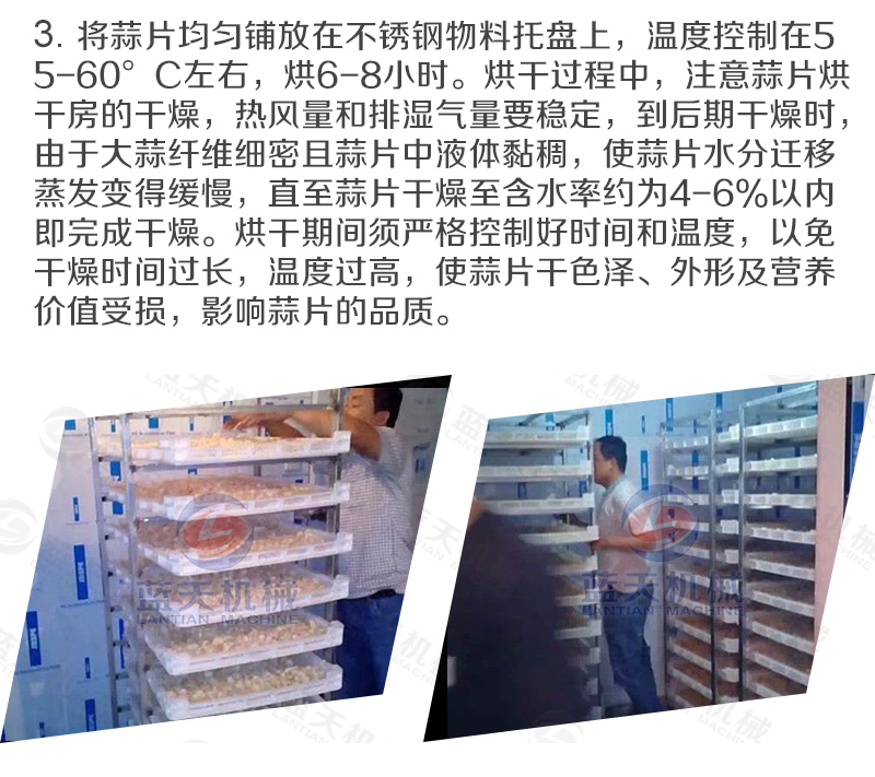 我們來介紹用蒜片烘干機(jī)脫水蒜片的烘干工藝 :