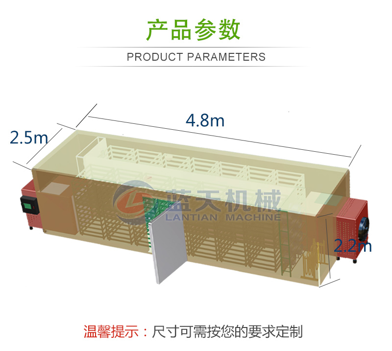 11、把蒜片均勻的鋪在蒜片烘干機(jī)設(shè)備的網(wǎng)格盤內(nèi),將網(wǎng)格盤插入物料車,將物料車推進(jìn)烘干內(nèi)。蒜片烘干過程中,溫度應(yīng)控制在55~75 ℃之間,烘干時(shí)間為10~12小時(shí)。烘干后的蒜片標(biāo)準(zhǔn)為:片形正常、色澤凈白,水分含量為4~5%。