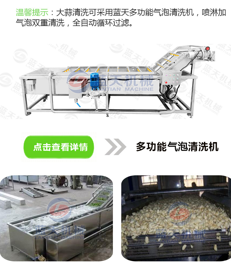 7、經(jīng)過脫皮的大蒜少不了會沾些灰塵或臟東西,可用氣泡清洗機(jī)將去皮后的大蒜們好好洗洗干凈,得保證要脫水的大蒜們干凈衛(wèi)生。