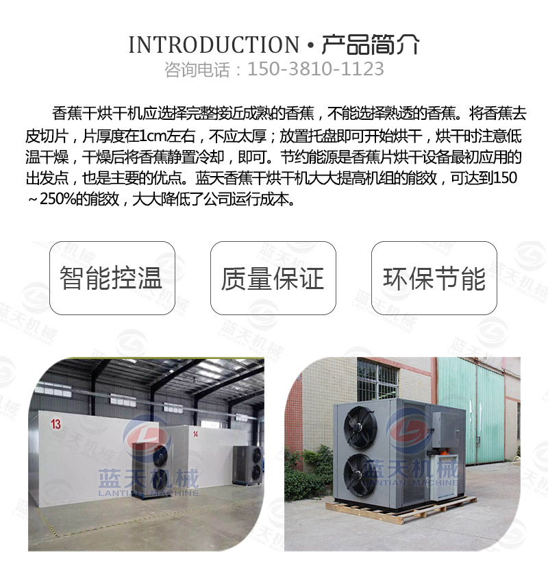 香蕉干烘干機使用的是熱泵空氣能加熱系統(tǒng),所以香蕉片烘干過程中受熱更加均勻。