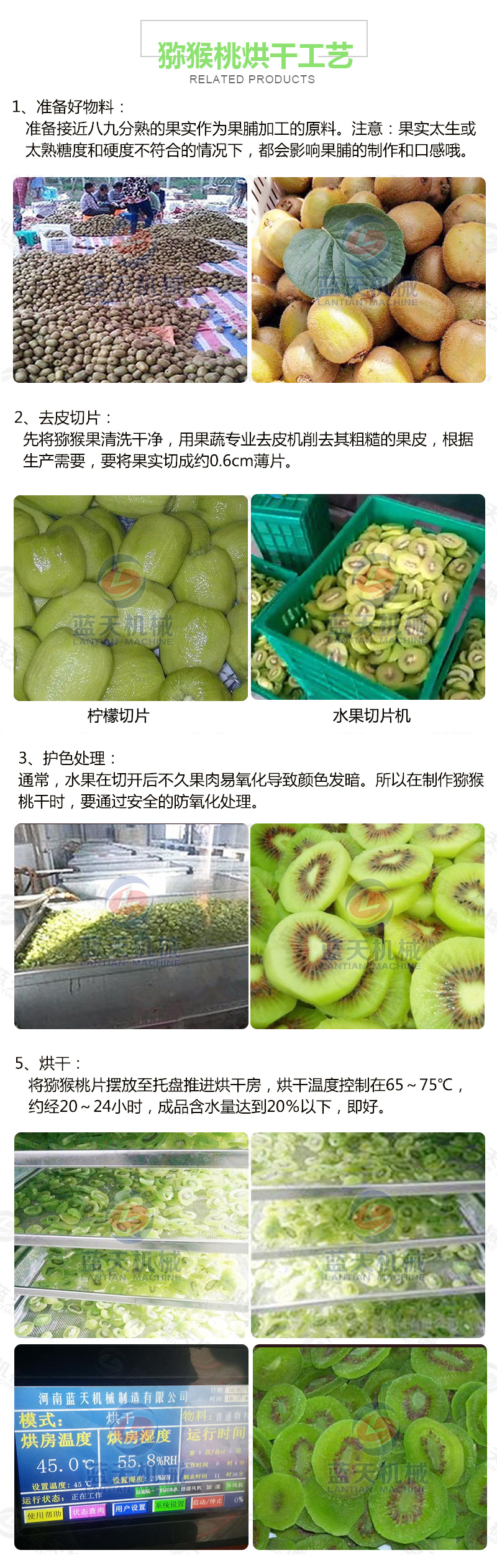 獼猴桃烘干機(jī)烘干獼猴桃的工藝流程: