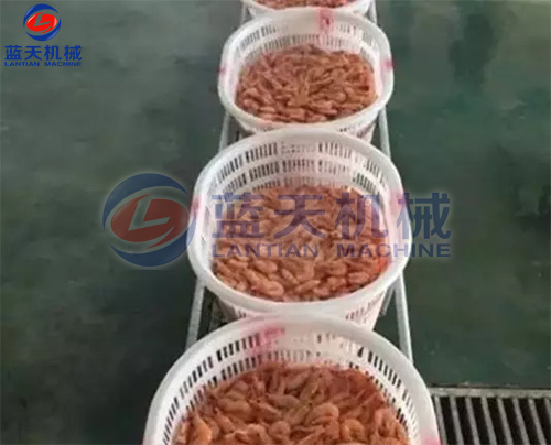 2、根據(jù)不同的海蝦河蝦品種,將烘干機(jī)的智能控制系統(tǒng)的溫度設(shè)置在50℃~70℃的中高溫為宜,時(shí)間約4小時(shí)左右,以水份為18%即可。烘干過程中一般要求稍大的循環(huán)風(fēng)量,風(fēng)速也比較高,避免水汽停留在蝦干表面,控制要點(diǎn)為抑制細(xì)菌生長、要保持海蝦、蝦仁烘干后的色澤。