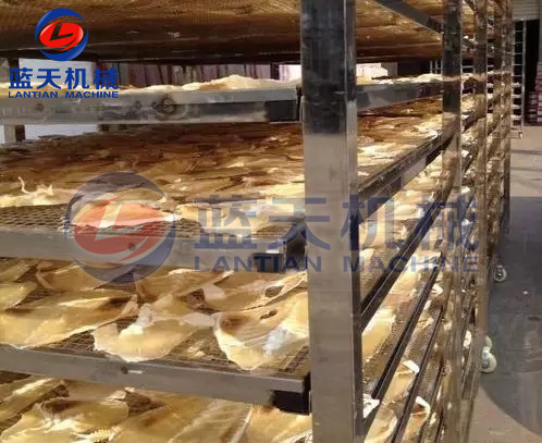 烘干時(shí)為使海魚(yú)不變色可以使用低溫長(zhǎng)時(shí)烘干,除濕是很重要的一個(gè)步驟,必須及時(shí)排濕,否則易變色。