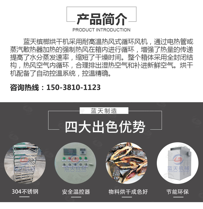4、檳榔烘干機(jī)烘干過程可靠,烘干過程無過熱或者燃燒危險(xiǎn)。