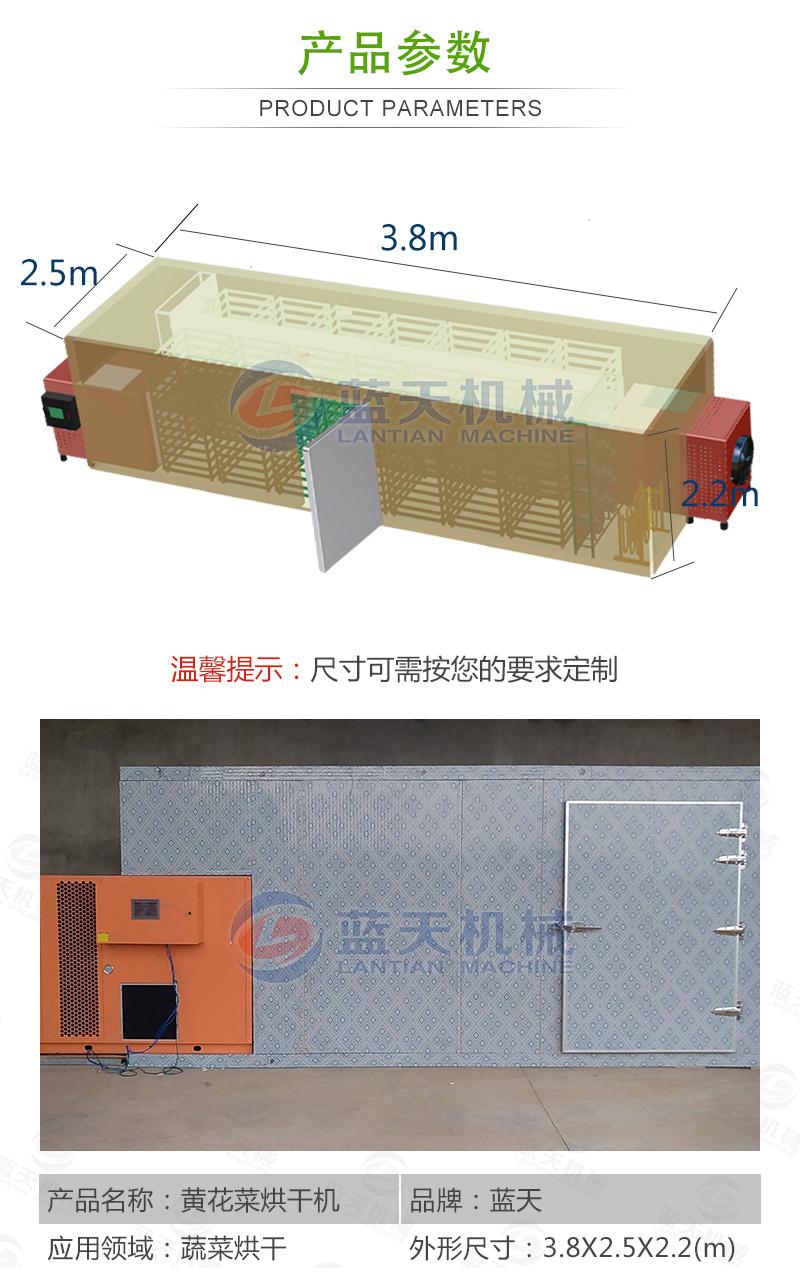 尾末的一段時間的烘干過程,要注意觀察黃花菜排水及干燥的程度,可根據(jù)干燥情況,繼續(xù)升高溫度,再烘干4小時左右,然后結束整個烘干流程。