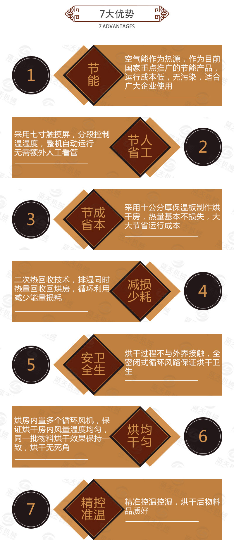 使用藥材烘干機能夠有效的保障被烘干干燥藥材的品質(zhì),顏色、外觀形態(tài)和有效成分均能得到妥善的保護;藥材烘干房烘干過程中不會對藥材及環(huán)境造成污染、沒有廢水、廢氣、廢渣排出,環(huán)保節(jié)能;藥材烘干房采用全自動溫度控制,操作簡單,可全天候24小時工作,不用專職人員看守;能耗低,保障物料烘干品質(zhì)的同時,藥材烘干機設(shè)備價格大幅度減少烘干的成本,經(jīng)濟性好。